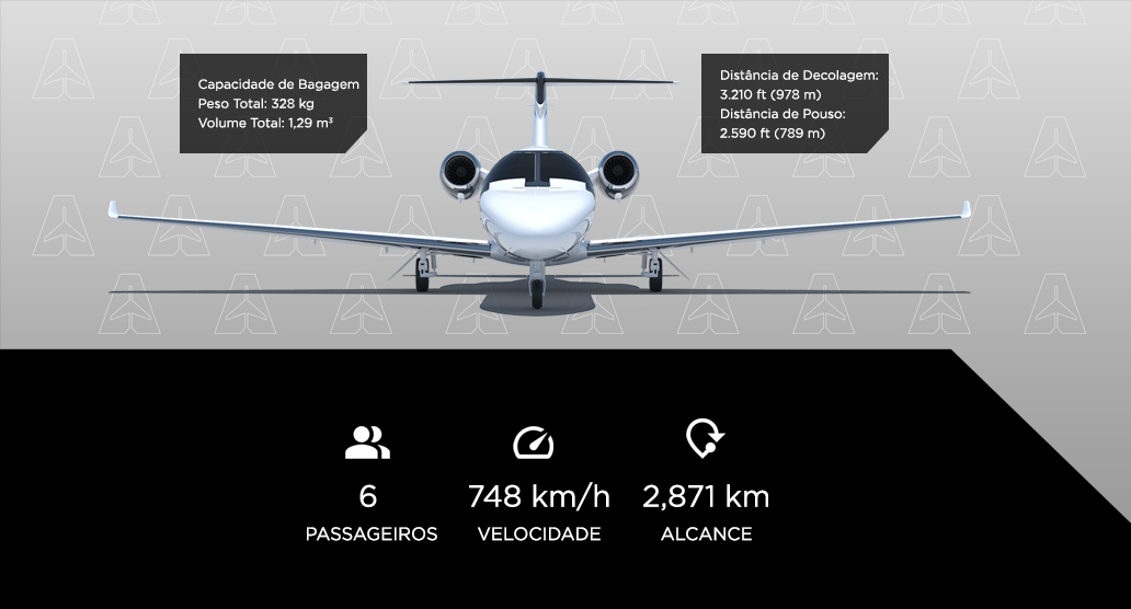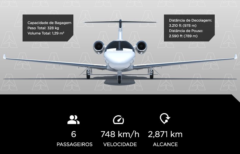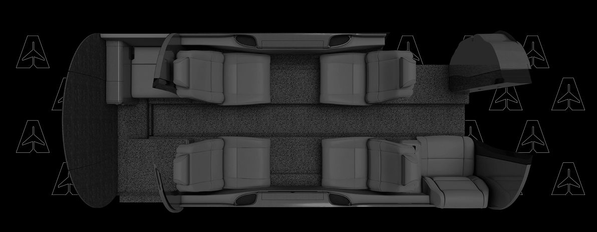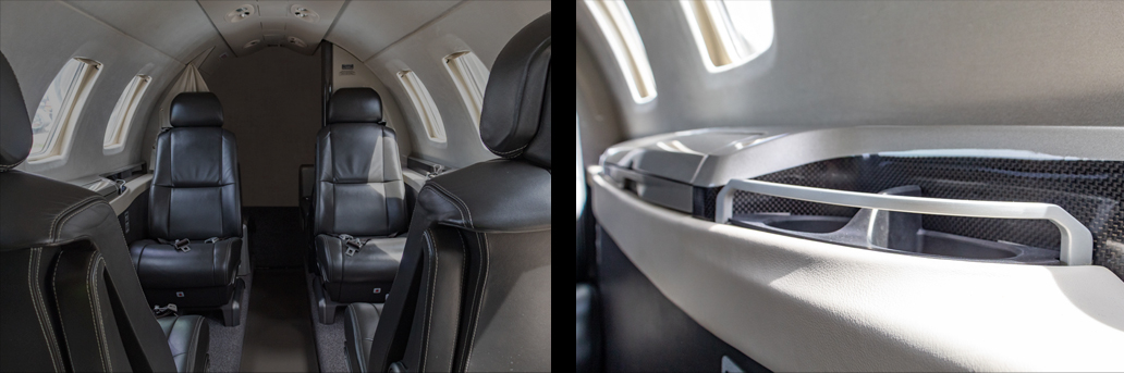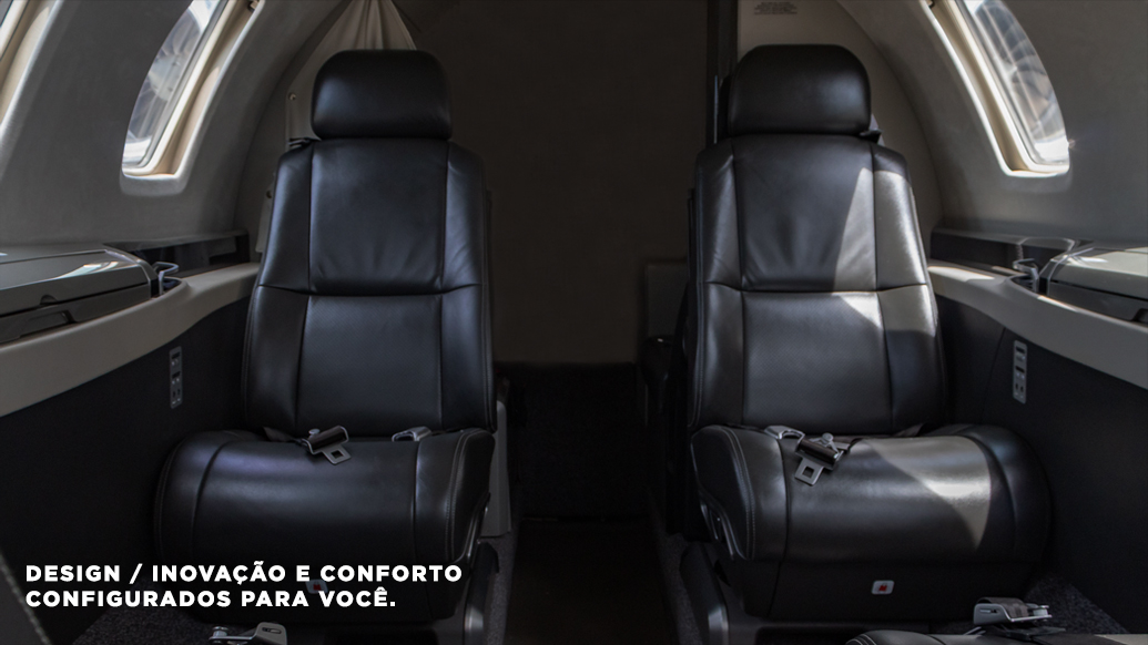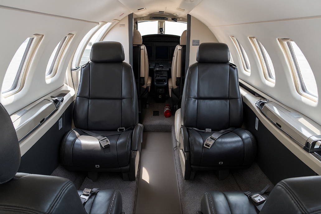 Uma incrível e agradável cabine que comporta até seis pessoas, sendo quatro delas em club seating. A aeronave é equipada com toalete, sistema de entretenimento e uma experiência de voo excepcionalmente silenciosa.